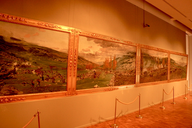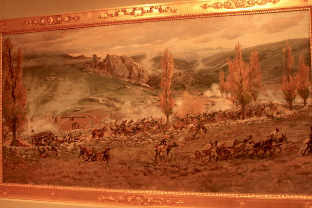 Postawił warunek: panorama najpierw zostanie zaprezentowana w Moskwie i Petersburgu, potem w Warszawie. Jedynym miastem jednak, w którym znajdował się budynek do prezentacji tego typu i rozmiarów obrazu była Warszawa, tak więc propozycja gubernatora była tylko prowokacją wobec artystów. Kossak z listem polecającym do cesarza Wilhelma II, który miał słabość do artysty, pojechał ze szkicami do Petersburga, do wielkiego księcia Włodzimierza Aleksandrowicza. Ten wysłał telegram do gubernatora z prośbą o wyrażenie zgody na namalowanie panoramy. Rozsierdzony gubernator jeszcze bardziej się zbiesił. Kossak, który wynajął już budynek na dwa lata, zamówił płótno, chciał pójść na ustępstwa, nie akcentując tak bardzo wizerunku szwadronu szwoleżerów. Imeretyński zgodził się na dzieło inne, bardziej uniwersalne. Kossak namalował panoramę Bitwa pod piramidami.