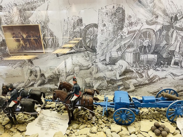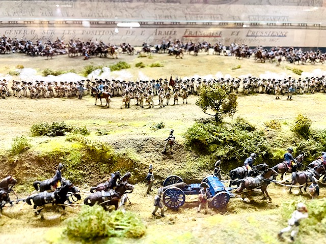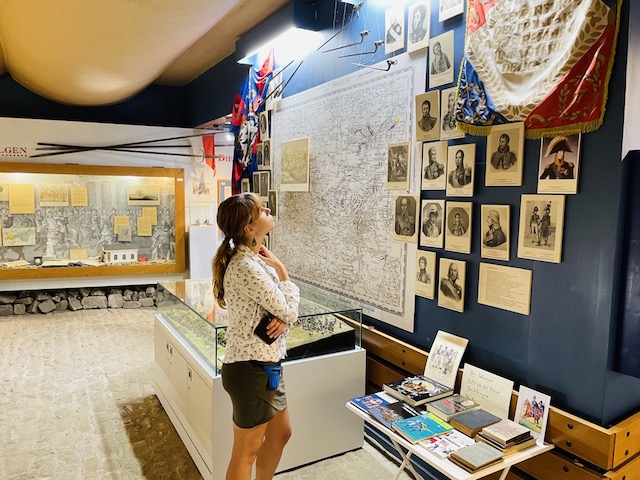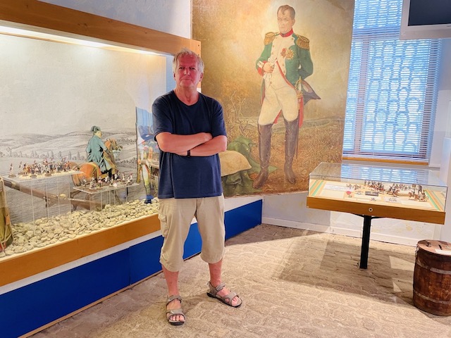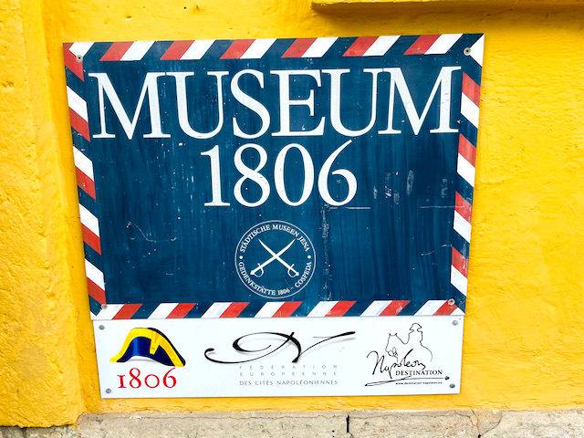 Pilnujący muzeum mężczyzna, po sześćdziesiątce nie mówi w żadnym obcym dla siebie języku, ale jest wielce pomocny, chętny, serdeczny a na migi potrafi wytłumaczyć prawie wszystko. Chętnie rozkłada mapę pola bitwy pod Jeną, pokazuje nam jak najłatwiej trafić do oddalonego o kilkaset metrów kamienia Napoleońskiego (dzięki Bogu, bo mapa jest bardzo niedokładna). Potem, kiedy kupuję gadżety napoleońskie, dokłada ulotki, wspomnianą mapę…