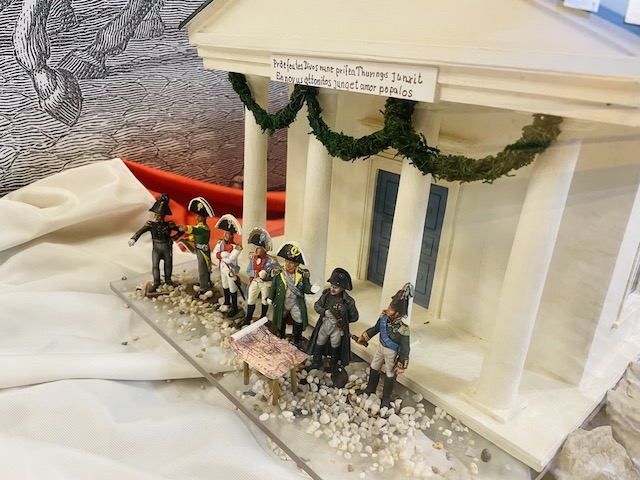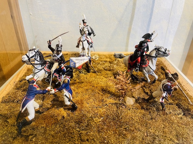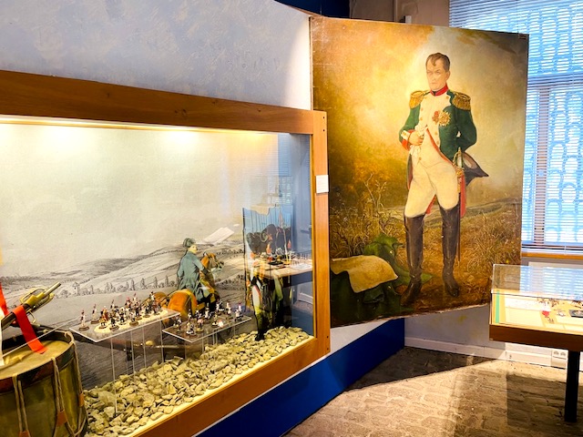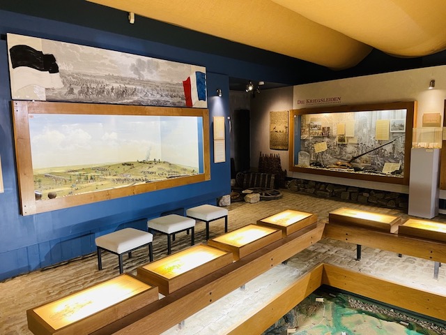 W samym muzeum, w jednym dużym pomieszczeniu zgromadzono eksponaty związane z wojną 1806 roku i sama bitwą: dokumenty, mapy, kopie sztandarów i mundurów, grafiki i obrazy, kopie broni. Kilka małych dioram przedstawia sceny bitewne, duże dioramy z figurkami żołnierzy w skali 1:72 wzbudzają największe zainteresowanie. W centrum znajduje się mapa plastyczna terenu, na którym rozegrała się bitwa. Oczywiście portrety i posążki cesarza i innych uczestników walk w październiku 1806 roku