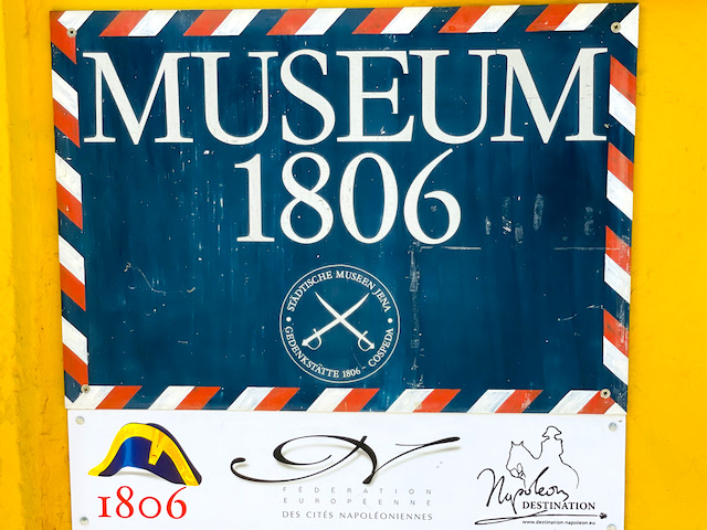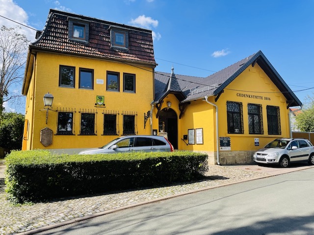 Wyróżniający się jaskrawo-żółtą fasadą budynek w Cospodze (dzisiaj – przedmieście Jeny) stoi na skraju pola bitwy, która rozegrała się tutaj 14 października 1806 roku. Mieści muzeum poświęcone bitwie – niewielkie, ale bardzo zacne i godne polecenia wędrującym śladami Napoleona.