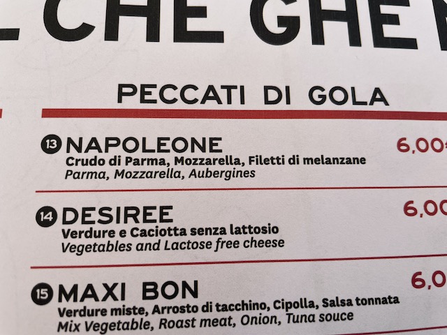 Obecnie w budynku pod nr 13. i 14 na Placu Napoleona działa knajpka Dal Gilio Bottega & Bistrot. Jednym z dań w menu, w poddziale „Grzechy obżarstwa” jest panini o nazwie „Napoleon”. W jej skład wchodzi Crudo di Parma (peklowane mięso z udźca wieprzowego przetwarzane i sezonowane wyłącznie w prowincji Parma), ser Mozzarella i smażone bakłażany.