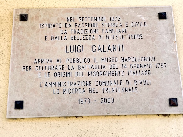 A na fasadzie domu, tuż obok nas wisi wspomniana tablica a napis na niej głosi: „We wrześniu, zainspirowany pasją historyczną i obywatelską, ze znanej tradycyjnej rodziny z tej pięknej ziemi – Lugi Galanti – otworzył dla publiczności Muzeum Napoleońskie upamiętniające bitwę z 14 stycznia 1797 roku, która dała początek włoskiego wyzwolenia narodowego.