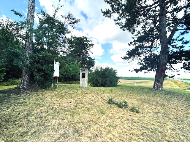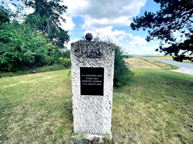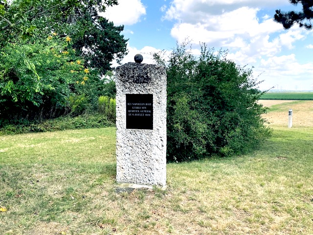 Na trawiastym pagórku stoi samotny, niewielki kamienny obelisk. Napisy na czarnych tabliczkach (w języku francuskim i niemieckim) głoszą: „W tym miejscu 6 lipca 1809 roku znajdowała się główna kwatera cesarza Napoleona I”.